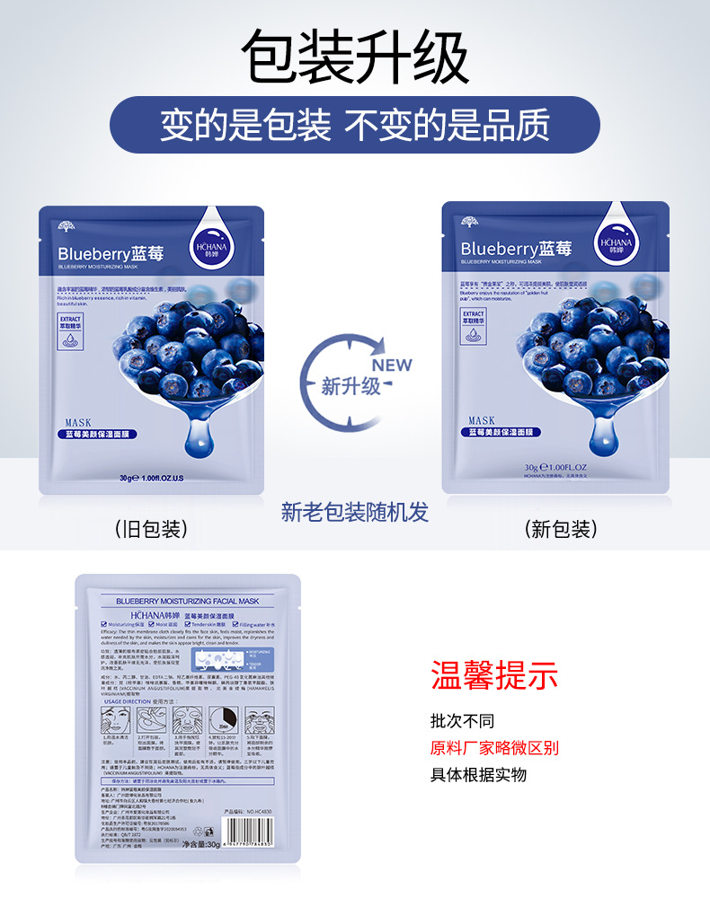 韩婵蓝莓美颜保湿面膜滋养嫩肤保湿补水控油植物海藻面膜