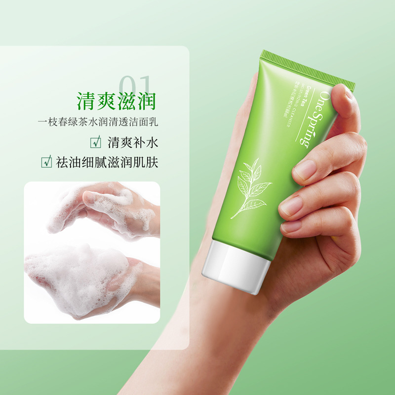 一枝春绿茶水润清透洁面乳滋润清洁油垢清爽不紧绷嫩肤洗面奶